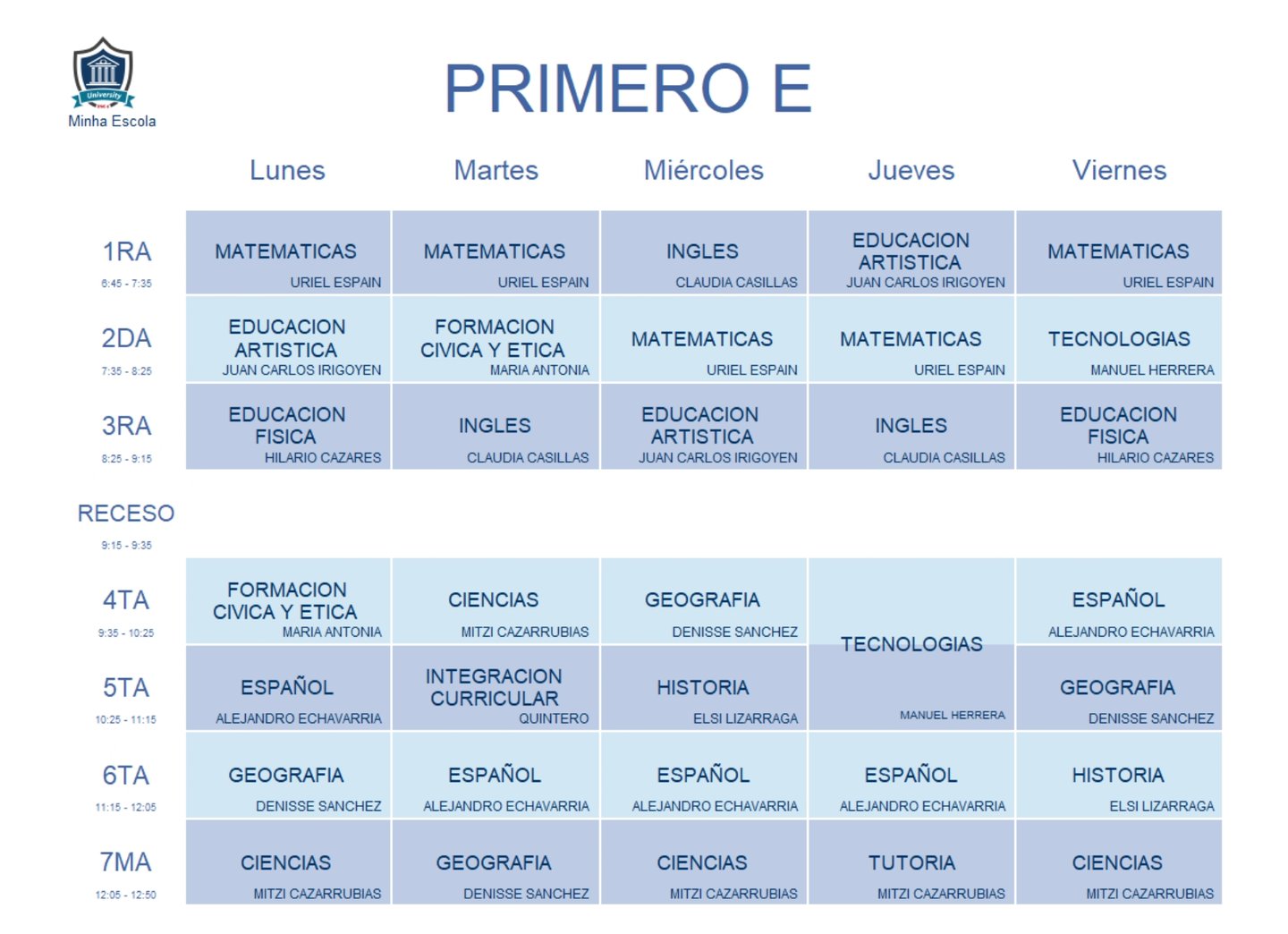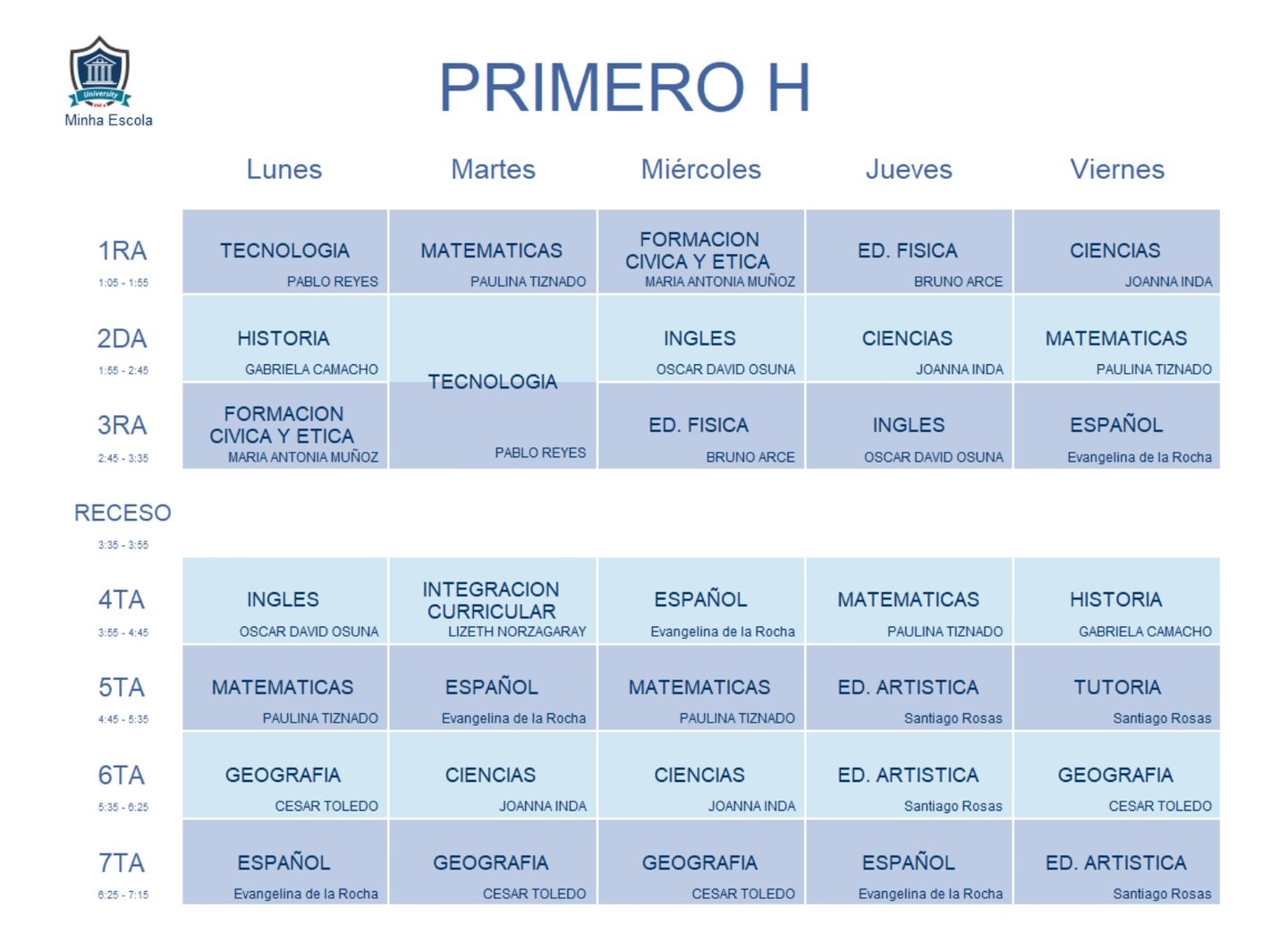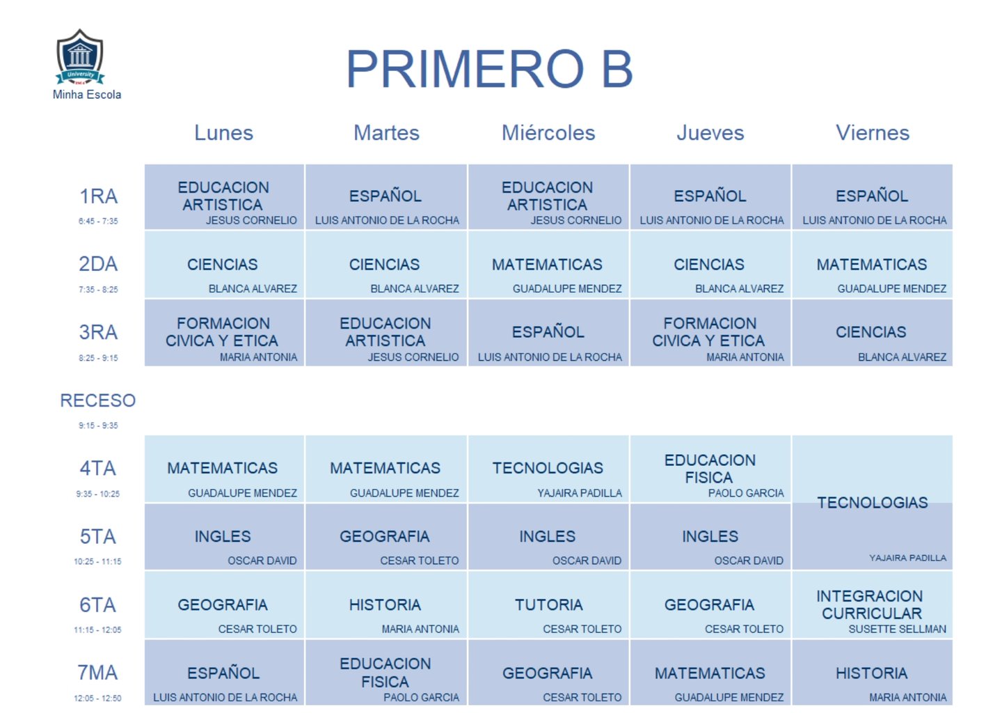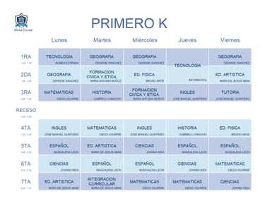 Bienvenidos a la pagina de horarios de primer grado, aquí en encontrara todas los horarios de este mismo y sus respectivos maestras encargados de cada asignatura.