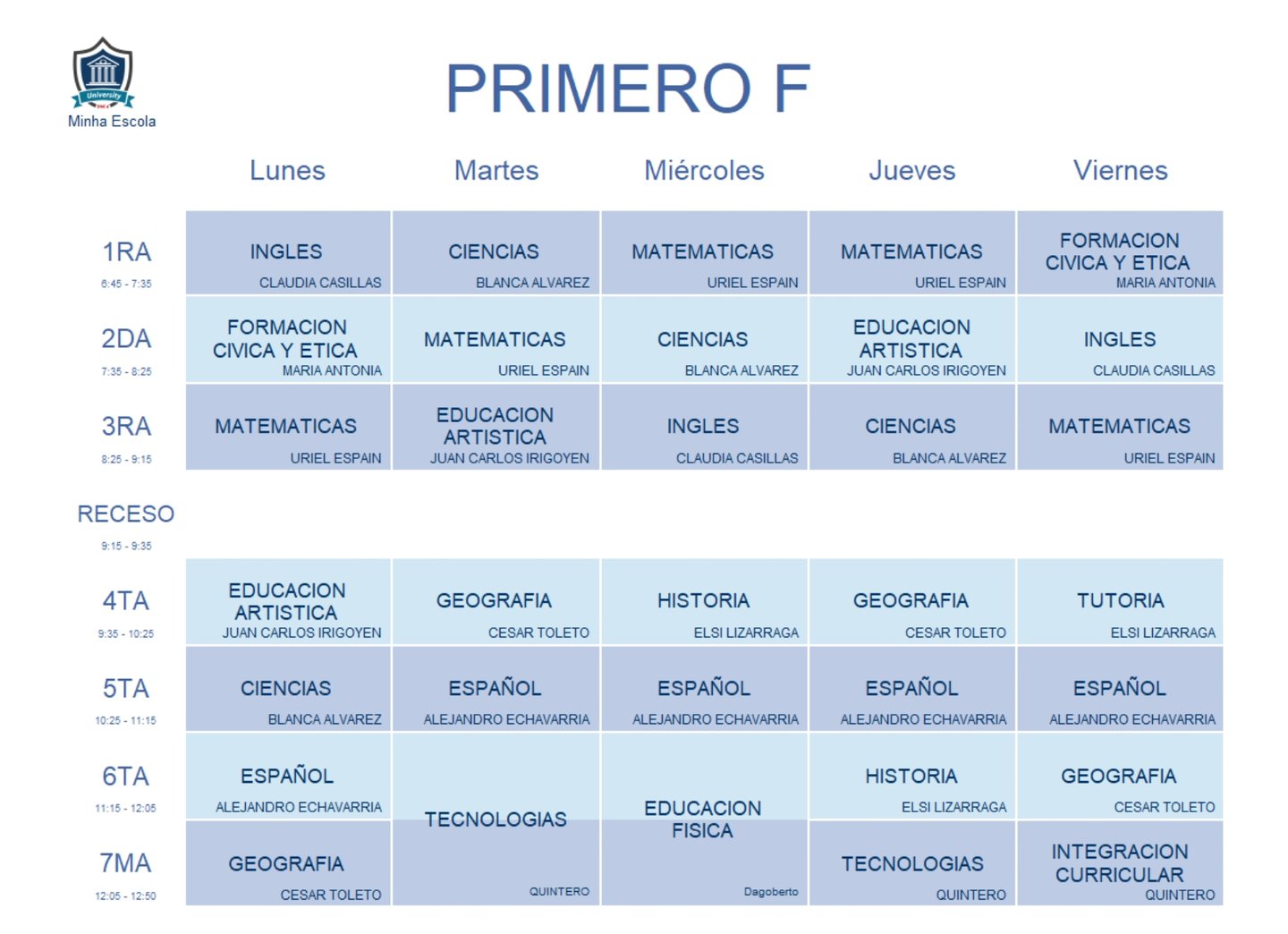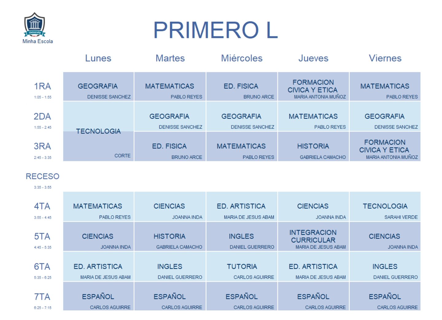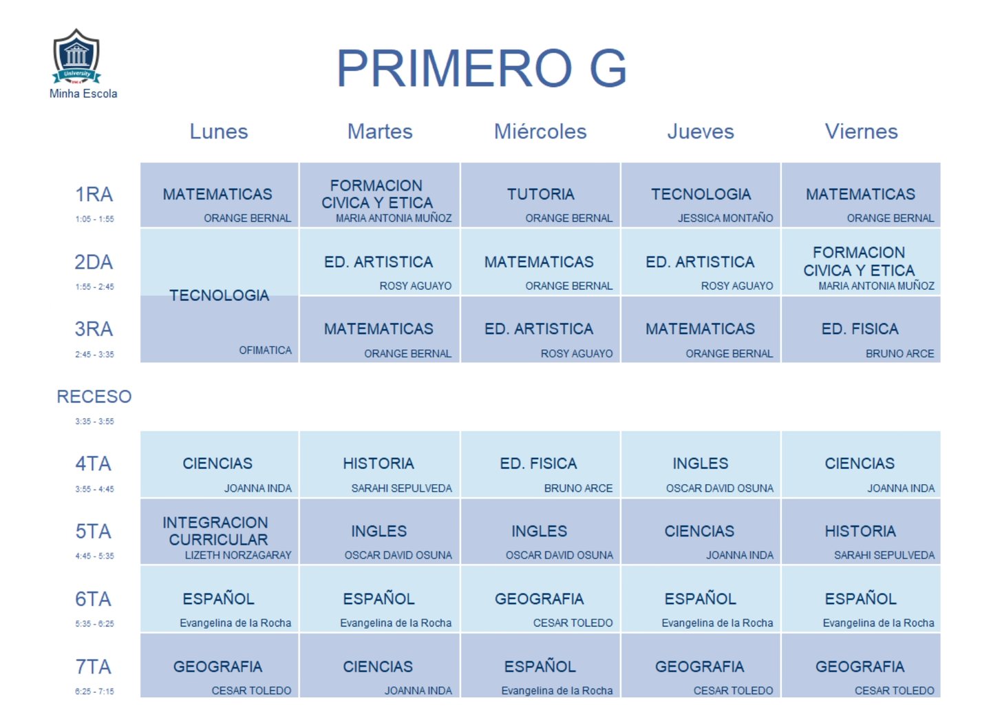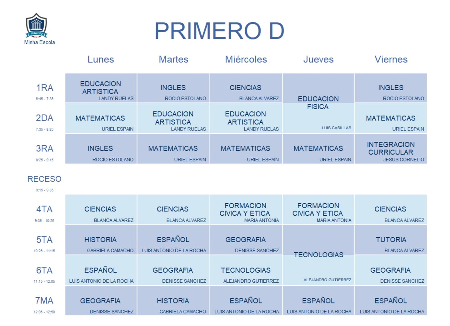Bienvenidos a la pagina de horarios de primer grado, aquí en encontrara todas los horarios de este mismo y sus respectivos maestras encargados de cada asignatura.